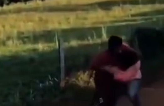 Essas são cenas chocantes de uma tentativa de feminicídio, quando o agressor desfere uma facada atrás da outra na companheira em meio a seus gritos. Nisso chega alguém e tenta conter o bandido.