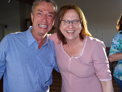 | Abreu, emocionado, com a síndica Fátima Nascimento. |