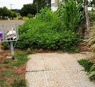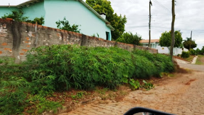 Aproveito ainda para mostrar essa outra cultura. Alguns usam as calçadas para ampliar as lavouras. Antes que alguém diga que é bonito, que isso sim é correto, aviso: a calçada só tem um dono; o pedestre. Claro que a plantação de mandioca ou feijão é algo que nos anima. Dos males, o menor. Pior é o matagal, o lixo e o cocô do cachorro…