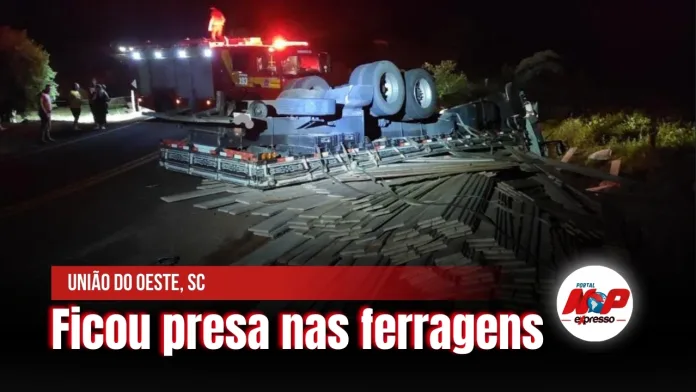 União do Oeste, SC – Um caminhão carregado com madeira capotou na Linha Santo Antônio do Meio no interior de União do Oeste, em Santa Catarina. O acidente aconteceu na noite de quinta-feira (18). Um motorista de 24 anos e uma adolescente de 15 anos ficaram feridos.