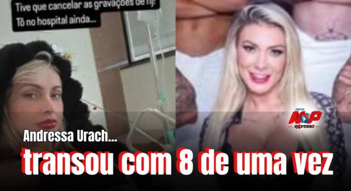 Andressa Urach foi hospitalizada após gravar uma cena com oito modelos para sua plataforma de conteúdo adulto. Após o término, ela relatou dores pélvicas intensas e buscou ajuda médica com auxílio do filho.