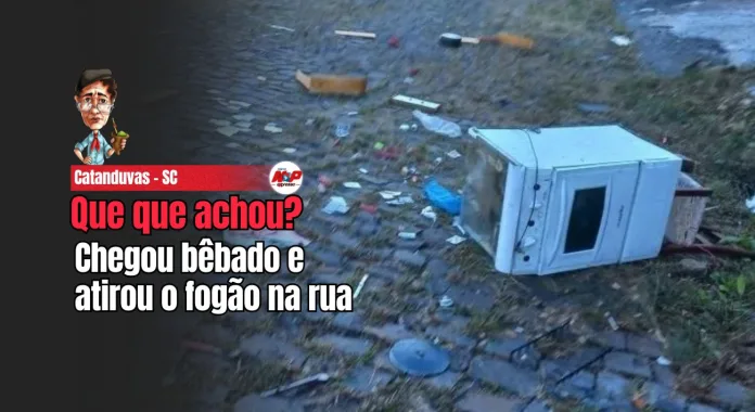 Catanduvas – SC – (Região de Joaçaba) – Tem sujeito que quando bebe parece o capeta pedindo serviço. Um vivente de 45 anos foi em cana no domingo depois de tocar o terror dentro de casa. O cidadão chegou com num pileque e quebrou o que viu pela frente e, pra completar a função, atirou o fogão no meio da rua.
