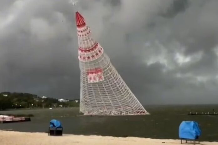 Maricá – Rio de Janeiro – Uma árvore de Natal flutuante de 56 metros caiu durante uma tempestade na segunda-feira (16) na Lagoa de Araçatiba. A queda ocorreu enquanto trabalhadores desciam da estrutura após um alerta da Defesa Civil sobre o mau tempo. Uma pessoa morreu e duas ficaram feridas. As vítimas foram socorridas imediatamente, mas a pessoa que faleceu chegou sem vida ao hospital. Os feridos estão fora de perigo, segundo a Prefeitura.
