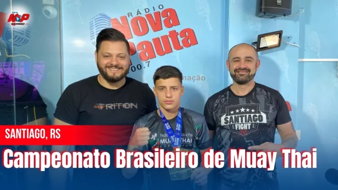 Santiago, RS – Nesta terça-feira (11), recebemos na Rádio Nova Pauta Márcio Saldanha e Henrique Machado, da Garra Team. No último sábado (8), eles representaram Santiago no Campeonato Brasileiro de Muay Thai 2025, realizado no Rio de Janeiro. Henrique conquistou a medalha de ouro na categoria masculina até 57 kg e garantiu vaga para competir na Tailândia.