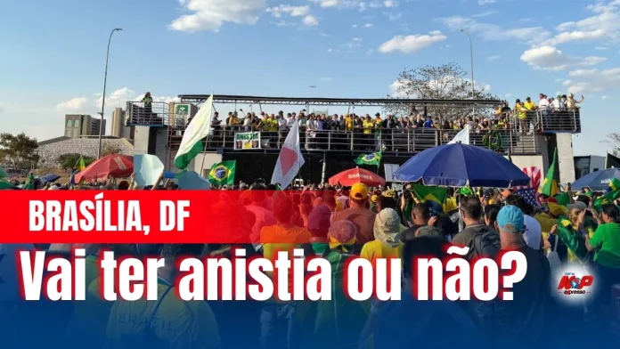 O ato acontece em meio à discussão no Congresso de um projeto que pode reduzir as penas dos condenados, mas sem conceder anistia geral, como defende o grupo bolsonarista. O movimento tenta pressionar os deputados antes da votação do texto.