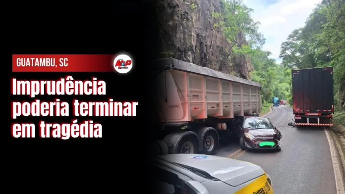 Guatambu, Santa Catarina – Um Fiesta foi tentar fazer uma ultrapassagem em local proibido na SC-283 em Guatambu, bateu na lateral de um caminhão que vinha no sentido contrário. Na sequência atingiu outro caminhão que seguia no mesmo trajeto. O acidente não deixou feridos e causou apenas danos materiais.