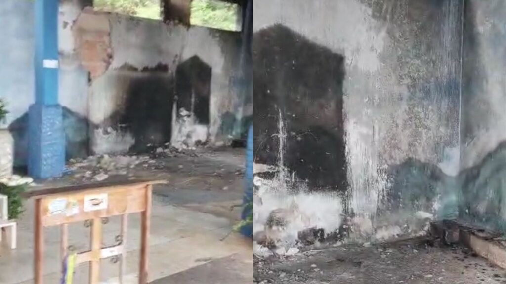 Camisão – MS – O santuário de Nossa Senhora Aparecida sofreu um incêndio nesta segunda-feira (14), um dia após as comemorações em homenagem à padroeira. As chamas danificaram a parede, o telhado e a estrutura de madeira. Há suspeitas de que o fogo foi causado pela grande quantidade de velas acesas durante a celebração religiosa do último sábado.