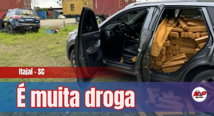Itajaí – SC – A Polícia Rodoviária apreendeu 1.034 quilos de maconha em um carro roubado e clonado na BR-101 na manhã desta quinta-feira, 2. O motorista não obedeceu à ordem de parada, fugiu em alta velocidade e depois abandonou o veículo, mas acabou preso.