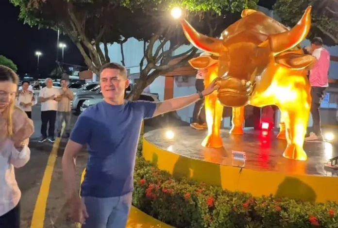 Manaus – O prefeito David Almeida foi alvo de críticas por inaugurar uma réplica do “Touro de Ouro de Wall Street” durante um temporal que atingiu a cidade no sábado (8/3). A cerimônia aconteceu em frente à Secretaria Municipal de Limpeza Pública enquanto a capital enfrentava graves alagamentos, quedas de muros e deslizamentos causados pelas chuvas. O evento contou com a presença do vice-prefeito, Renato Júnior, da primeira-dama, Izabelle Fontenelle, e de secretários municipais.