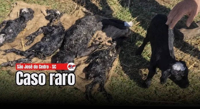São José do Cedro – SC – Uma ovelha deu à luz cinco cordeiros na manhã desta sexta-feira, em uma propriedade na Linha Santa Rita, no interior do município. O caso foi registrado na área rural de Itacir Potrich e chamou atenção da família.