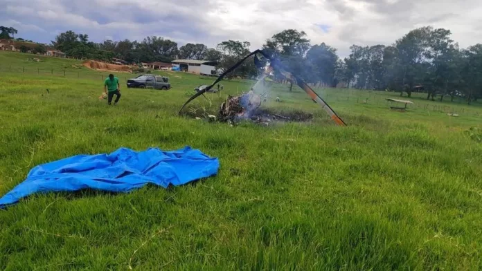 Cruzília – Minas Gerais – Um helicóptero usado para pulverização de lavouras caiu na tarde de segunda-feira (27) em uma fazenda, resultando na morte de três pessoas. As vítimas foram Fernando, piloto da aeronave, Lúcio André Duarte, gerente da fazenda, e Elaine Moraes Souza, auxiliar administrativa. A Polícia Militar e o proprietário da fazenda confirmaram os óbitos, mas a identificação oficial aguarda os trabalhos da perícia.