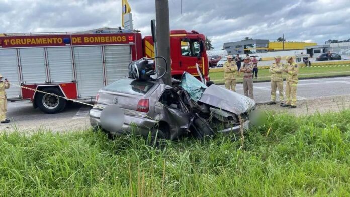 Curitiba – Paraná – Um motorista de 33 anos morreu após colidir o Gol que dirigia contra um poste na Rua José Rodrigues Pinheiro, no bairro Cidade Industrial, na tarde desta sexta-feira (15). Os Bombeiros foram acionados rapidamente, mas a vítima acabou falecendo. A tenente Liana descreveu a colisão como extremamente violenta.