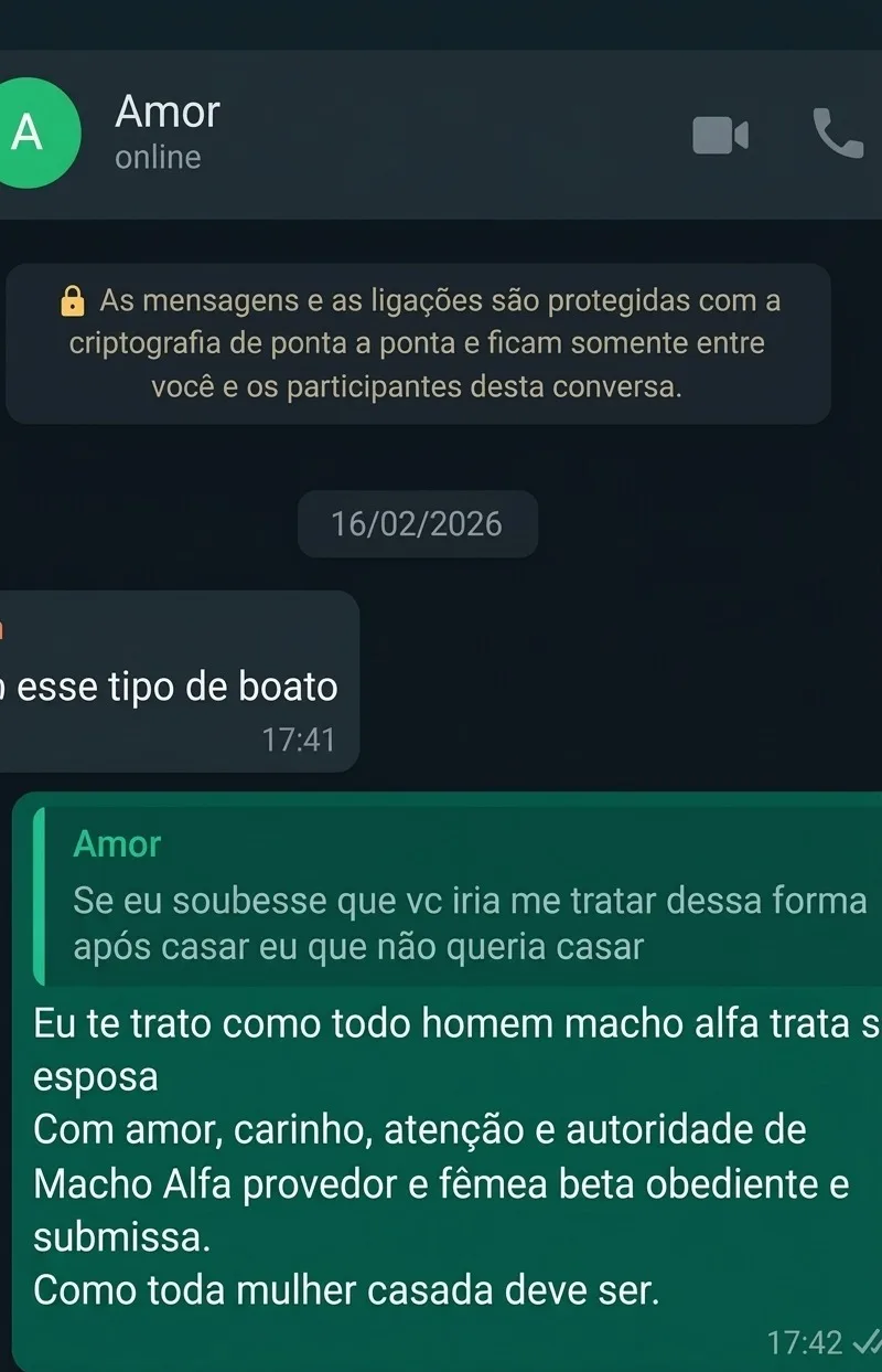 Conversas mostram o controle dentro da relação. Geraldo se dizia “macho alfa” e cobrava que a esposa fosse “fêmea beta obediente e submissa”. Ele impunha regras, criticava a independência dela e tentava controlar até o jeito de se vestir e agir.