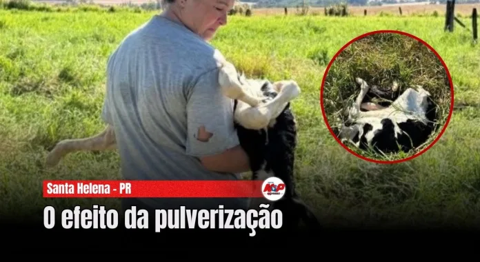 Santa Helena – PR – (Região de Toledo) Solange Schneider e os produtores de leite do distrito de Moreninha perderam quatro bezerras que foram abortadas no oitavo mês de cria. O gado comeu pasto sujo de veneno secante que veio de uma lavoura vizinha. A aplicação do veneno foi feita por um drone e o vento acabou levando o produto para a comida das vacas.