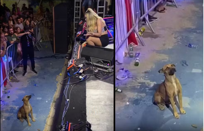 Cajueiro da Praia, Piauí – Um cachorro vira-lata caramelo viralizou ao ser filmado curtindo um show de forró na última sexta (13). O momento aconteceu durante a apresentação da cantora Taty Girl, que pediu para não soltarem fogos de artifício a fim de não assustar o animal.
