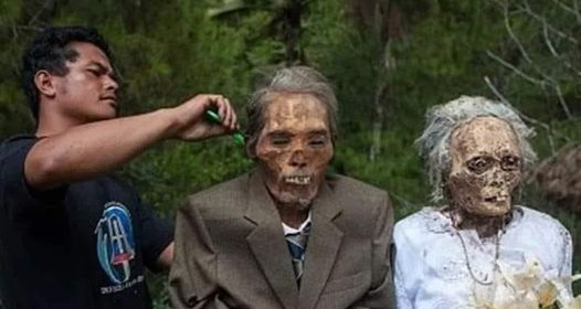 Pelo mundo – Algumas aldeias da Indonésia mantêm a tradição de desenterrar os mortos todos os anos, em agosto. Nesse período, os corpos são limpos, vestidos com roupas modernas e levados para passeios. A celebração envolve alegria e reencontros entre as famílias.