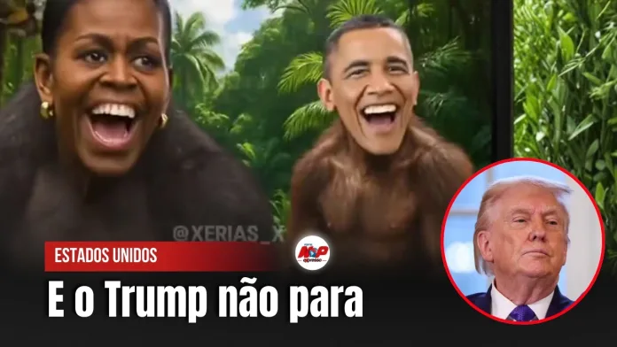 Estados Unidos – O presidente Donald Trump divulgou na quinta-feira (05), um vídeo na Truth Social que retrata Barack Obama e Michelle Obama como macacos. As imagens aparecem por cerca de um segundo ao fim de um clipe com teoria conspiratória sobre as eleições. A canção The Lion Sleeps Tonight toca ao fundo.
