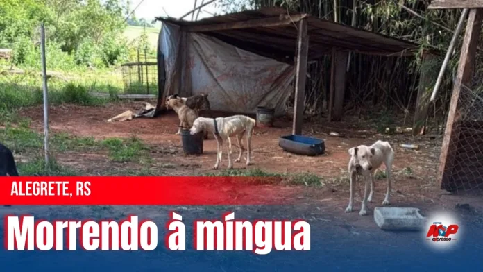 Alegrete, RS – Voluntários da ONG OPAA encontraram 14 animais em uma propriedade rural no Passo Novo, em Alegrete, nesta semana. Os cães estavam desnutridos e um deles já havia morrido. O responsável pelo local aparecia esporadicamente, segundo relato da entidade.