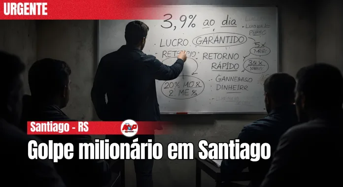 Santiago – RS – (Região Central) Um novo golpe financeiro, com características claras de pirâmide, está sendo aplicado em Santiago e já deixou dezenas de vítimas. O esquema não é novidade para a região. Anos atrás, uma empresa chamada Unik causou prejuízo milionário em vários municípios. Agora, a história se repete. Há relatos de pessoas que perderam cinco mil, outras 14 mil, e promessas de lucros rápidos que nunca chegaram.