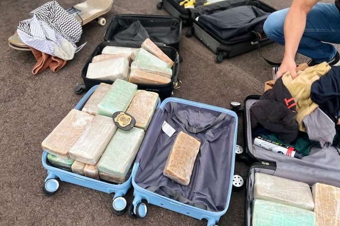 De acordo com a Polícia Federal, a droga estava distribuída em quatro malas de um passageiro que havia embarcado no Paraná com destino à Serra. Ele tem 29 anos, mora em Porto Alegre e foi preso em flagrante.