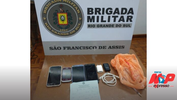 São Chico – Um detento (28 anos) do semiaberto foi preso pela Brigada na noite desta segunda (2) tentando arremesar para o pátio do presídio quatro celulares e dois carregadores. Ele estava em situação de saída temporária. Foi apresentado na Delegacia de Santiago. O fato será apurado por meio de inquérito policial.