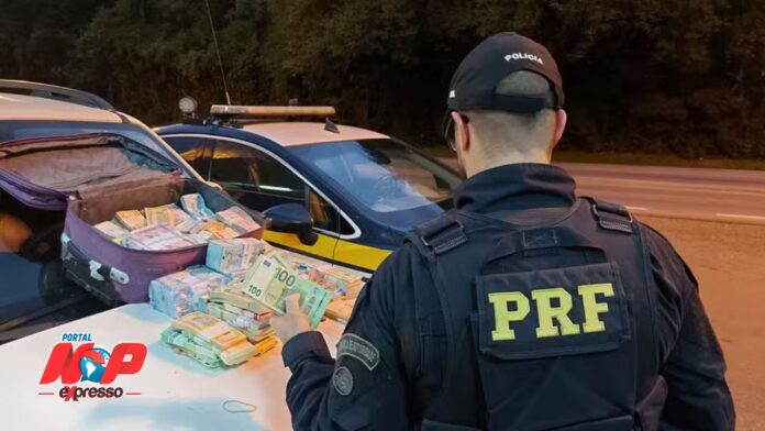 Os policiais encontraram maços de cédulas de reais, dólares e euros escondidos em malas e no compartimento do estepe. Ao todo, foram contabilizados: