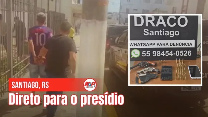 Santiago, RS – Em uma ação da Polícia Civil na tarde desta quarta (21), um jovem de 20 anos foi preso em flagrante por porte ilegal de arma de fogo. A prisão ocorreu durante o cumprimento de um mandado de busca e apreensão em uma residência na área central.
