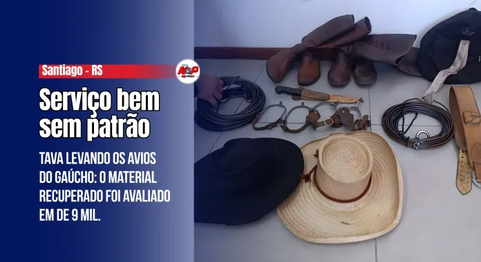 O índio resolveu carregar tudo que viu pela frente e quase limpou o galpão. Na mochila e nos braços, ele levava botas, chapéu e boa parte da montaria de um gaúcho, tipo guaipeca que come oveia (ganiça até pelego). Mas o sujeito não foi longe e acabou cercado pelos policiais antes de sumir com a tralha.