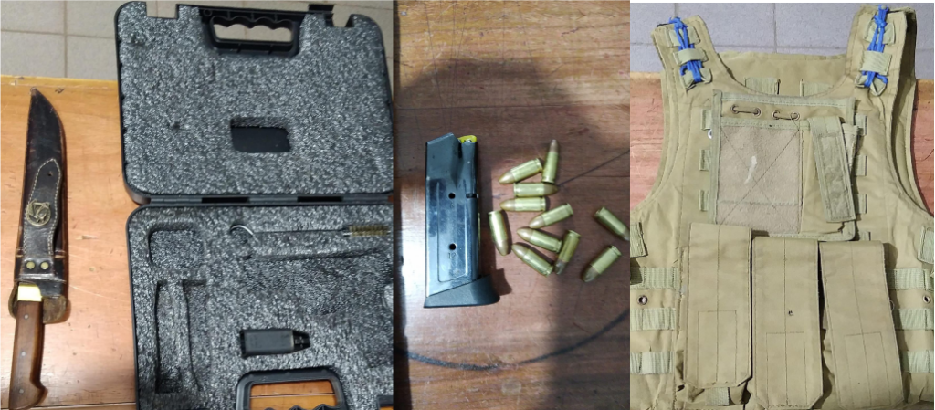 Na casa, os policiais apreenderam um carregador com 11 cartuchos de munição 9mm, um colete balístico, uma maleta de pistola Taurus e duas porções de cocaína. O acusado encaminhado ao presídio.
