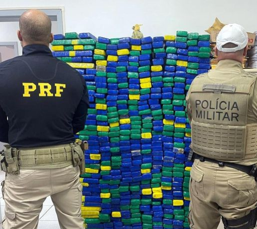 Poucas horas depois, na SC-161 em Anchieta, 565 quilos de maconha foram encontrados escondidos dentro de um carro coberto por um cobertor preto. Levando à prisão de dois homens.