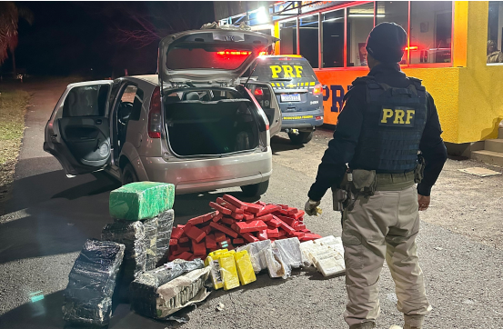 Neste sábado (29), a Polícia Rodoviária Federal (PRF) prendeu um traficante e apreendeu 230 quilos de drogas em um Fiesta com placas de São Leopoldo, na BR 287 em Santiago.