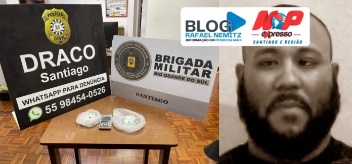 A prisão aconteceu na noite de segunda (13), numa ação da Polícia Civil e Força Tática da Brigada. Os policiais encontraram 100 gramas de cocaína, o que resultou na prisão de Cristiano de Lima Machado (28 anos). Após o flagrante na delegacia, ele foi encaminhado ao presídio.
