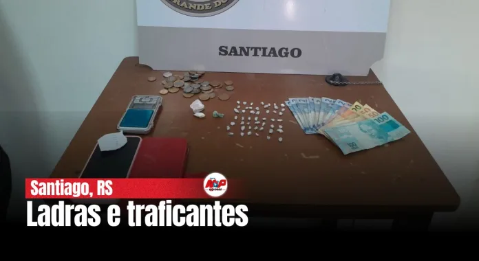 Santiago, RS – A Brigada prendeu duas mulheres, de 20 e 21 anos, por receptação e tráfico de drogas nesta terça (31). A ação da ROCAM (policiamento com motos) iniciou após o relato do furto de um celular, que levou os policiais até a primeira suspeita. Ela admitiu ter trocado o aparelho por drogas.