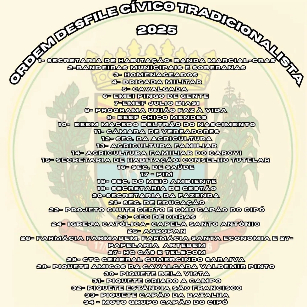 Ao remarcar o desfile, o prefeito mostra que não se trata apenas de organizar um evento, mas de reafirmar identidade. Mais uma vez, ele se coloca do lado da população, cuidando tanto do presente no gabinete quanto do futuro na preservação do nosso tradicionalismo.