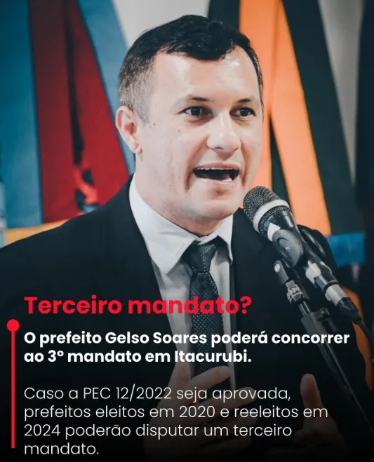Nacional – Itacurubi – RS – Uma publicação do prefeito Gelso Soares acendeu a curiosidade dos moradores ao mencionar a possibilidade de um terceiro mandato para prefeitos que já foram reeleitos. A equipe do NPE Expresso buscou a informação e confirmou que a discussão está ligada à PEC 12/2022, que tramita no Senado.