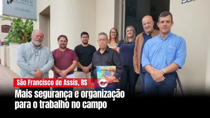 São Francisco de Assis, RS – Nesta quarta-feira (25), Evandro Salbego, Rúbia, Adriano Vielmo e Rafael Aguiar participaram da reunião que definiu o dissídio dos trabalhadores rurais. Na prática, isso quer dizer que eles chegaram a um acordo sobre salário e condições de trabalho. Esse tipo de reunião serve justamente pra ajustar valores e regras entre patrões e empregados.