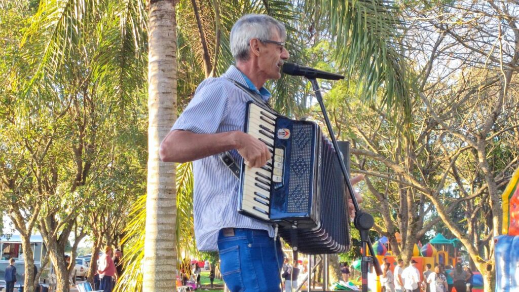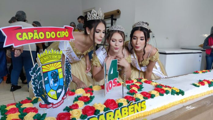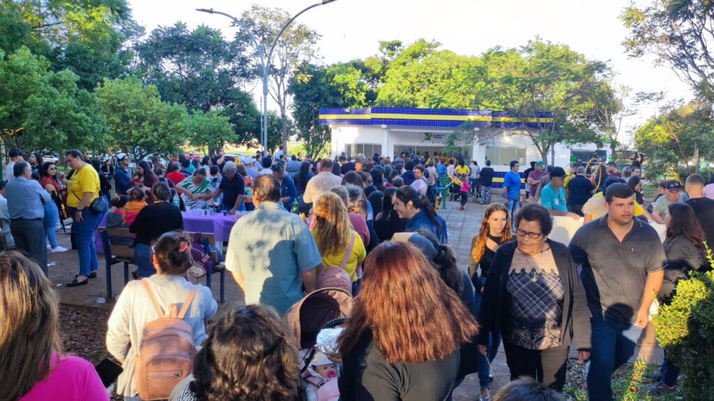 A cidade celebrou o aniversário com uma grande festa na praça. A tarde ensolarada estava animada, com a presença de um bom público e o bolo feito pela própria comunidade.