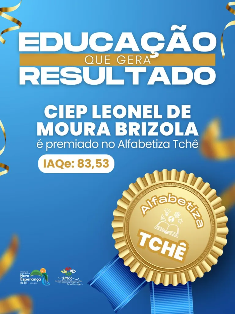Nova Esperança do Sul, RS – O Centro Integrado de Educação Pública Leonel de Moura Brizola de Nova Esperança do Sul recebeu o Prêmio Alfabetiza Tchê. A iniciativa do Governo do RS valoriza escolas públicas com destaque na alfabetização do Ensino Fundamental.