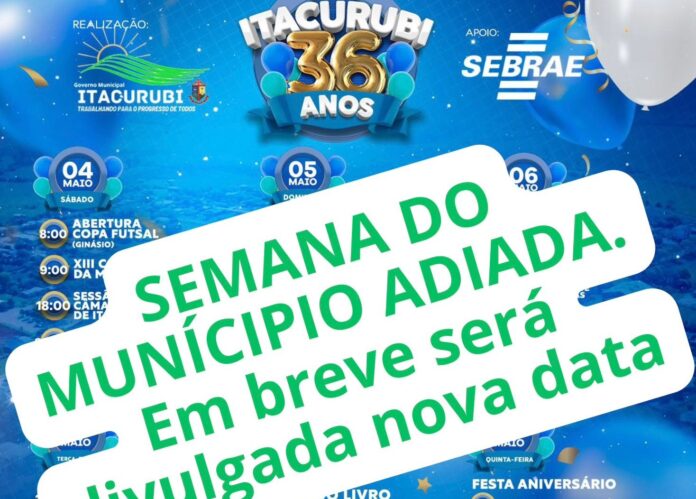 A 36ª Semana do Município estava programada com muitas atividades e seria de 4 a 9 de maio com a tradicional festa de aniversário.