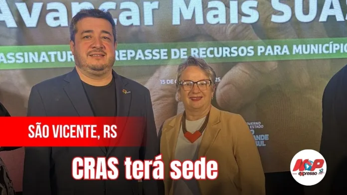 São Vicente do Sul- O prefeito Fernando Pahim e a secretária de Desenvolvimento Social, Rosmari Mossi, participaram da assinatura do repasse dos programas Centro Dia e Avançar Mais SUAS. O município foi contemplado com 500 mil, valor destinado à construção da sede própria do CRAS.