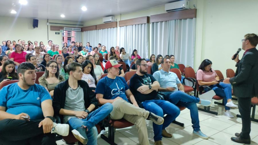 O encontro foi no auditório do Colégio Benincá, hoje dirigido pelo professor José Abílio Flores, ao qual os palestrantes agradecem. Agradecimento especial ao prefeito Ivori Júnior.