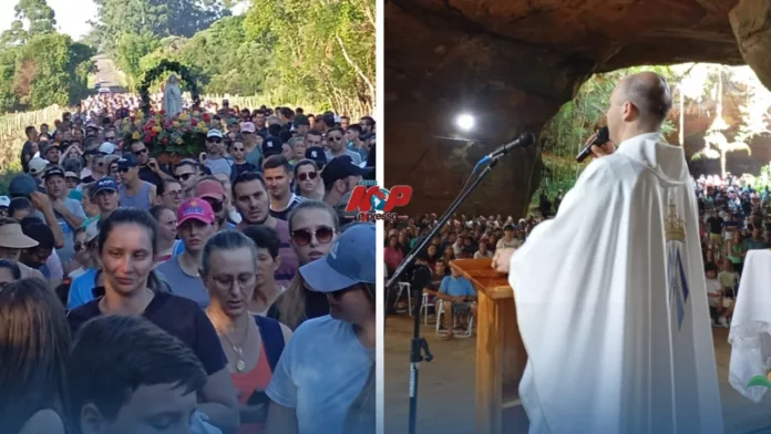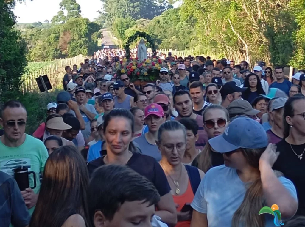 A imagem da Mãe Medianeira também esteve presente, acompanhando os romeiros. A romaria é uma tradição local, promovendo momentos de fé e devoção entre a comunidade e visitantes.