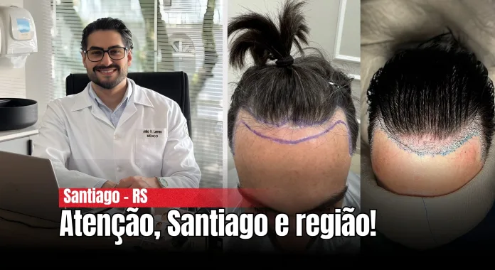 Santiago – RS – (Região Central). O médico santiaguense João Henrique Lemes, com uma consagrada atuação em transplantes capilares, é sócio-proprietário da clínica Renovo, em Caxias do Sul. Mas agora ele anunciou uma novidade importante para os seus conterrâneos. Vai manter uma agenda mensal de atendimentos e cirurgias em Santiago. João Henrique destaca que o procedimento deixou de ser apenas uma questão estética para se tornar um fator essencial de autoestima e sucesso pessoal para os pacientes.