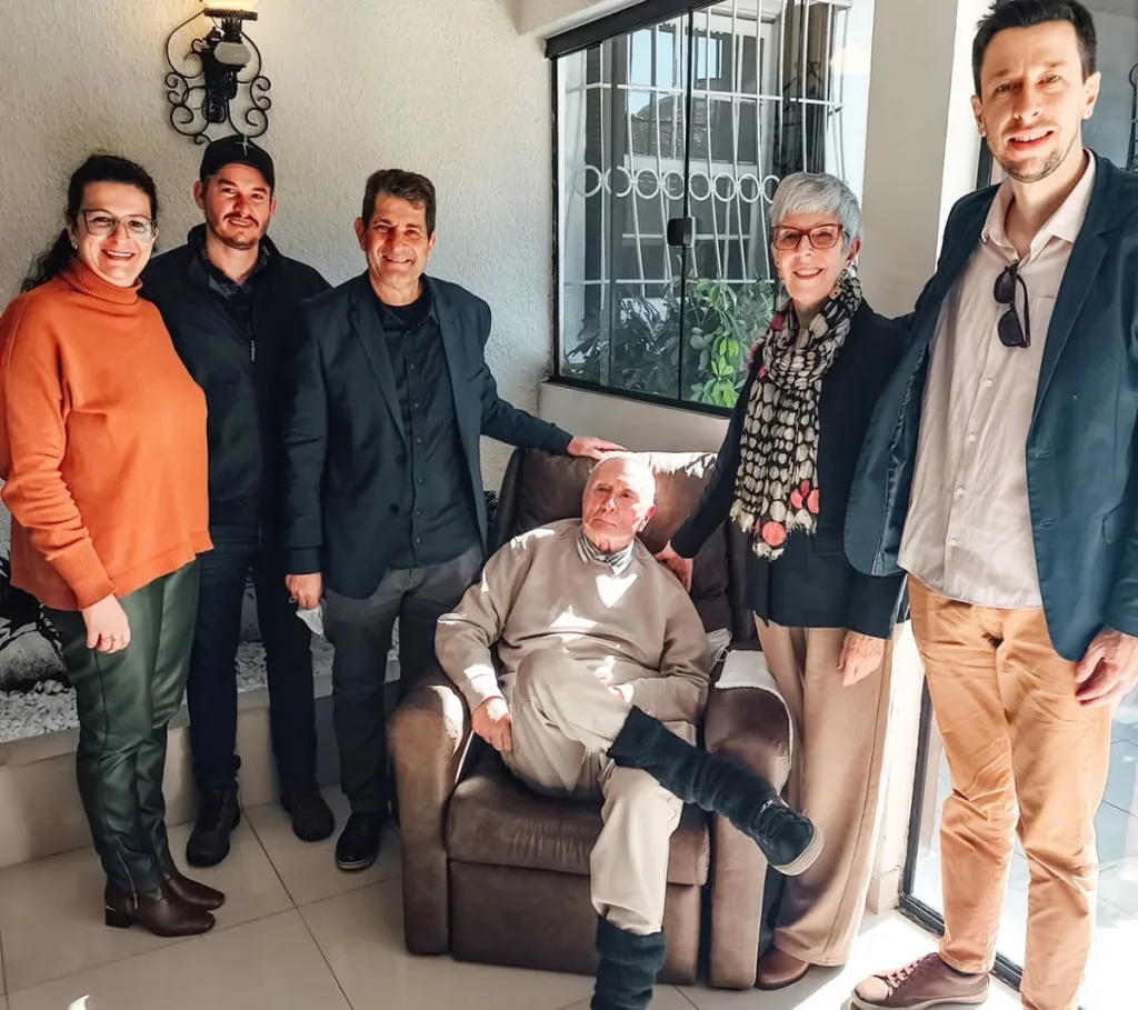 São Chico – RS – Uma comitiva formada pelo prefeito Paulinho Salbego, pela secretária de Educação e Cultura, Prescilla Saquett, e pelo assessor de Cultura, Régis Lançanova, visitou no dia 13 de agosto o escritor e poeta assisense Salvador Lamberty em um gesto de agradecimento e reconhecimento.