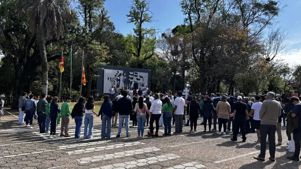 São Francisco de Assis – RS – Na manhã de quinta, 02, houve uma homenagem póstuma aos 102 anos do chamado “Combate de 1923”, ação militar ocorrida dentro da Revolução Gaúcha. O ato, feito em parceria entre a prefeitura e o Núcleo de Pesquisa Itajuru, tentou resgatar a memória, refletir sobre o passado e lembrar que paz, respeito e diálogo são o caminho para o futuro.