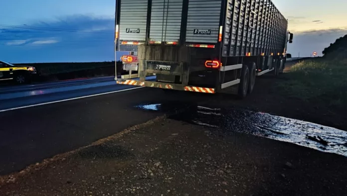 São Luiz Gonzaga – Na noite desta sexta-feira (28), a Polícia Rodoviária Federal flagrou um caminhão boiadeiro despejando chorume de gado na BR-285. O caminhão Volvo, com um semirreboque boiadeiro era de Itaqui.