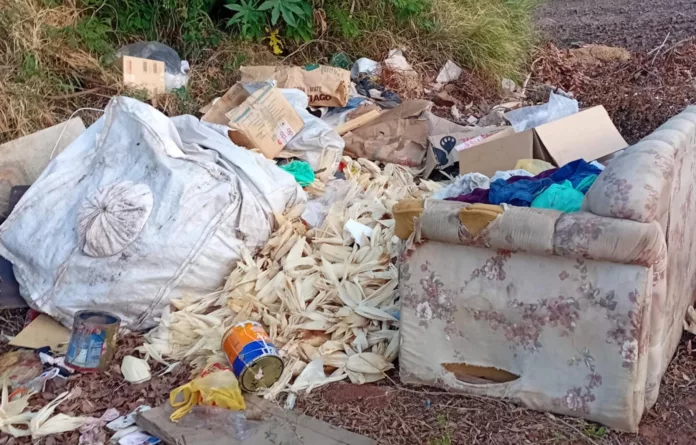São Chico – (por Badanha) Na rua Ernesto Alves, esquina com a 3 de outubro, bairro Italiano, foram descartadas latas de tintas, papelões, sacolas plásticas, palhas de milho e um sofá atopetado de roupas.