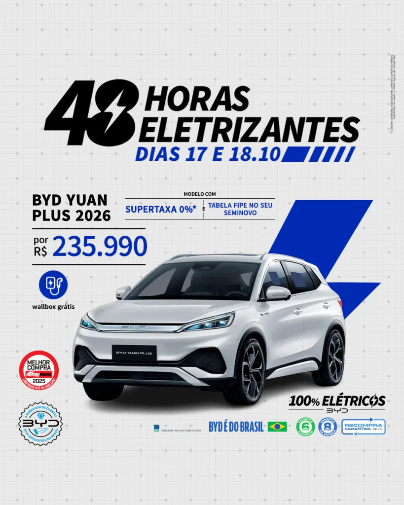 BYD é do Brasil. É 100% elétrico. É o futuro hoje.