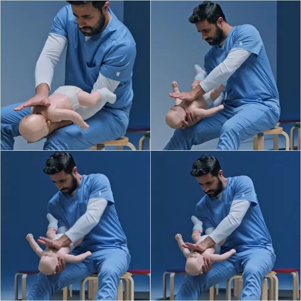 Nos bebês de até um ano, a sequência também muda: cinco pancadas nas costas e cinco compressões no peito, com a base da palma da mão, até que o corpo estranho seja expulso ou o bebê perca a consciência. A compressão abdominal segue proibida nessa faixa etária, por risco de lesão interna.