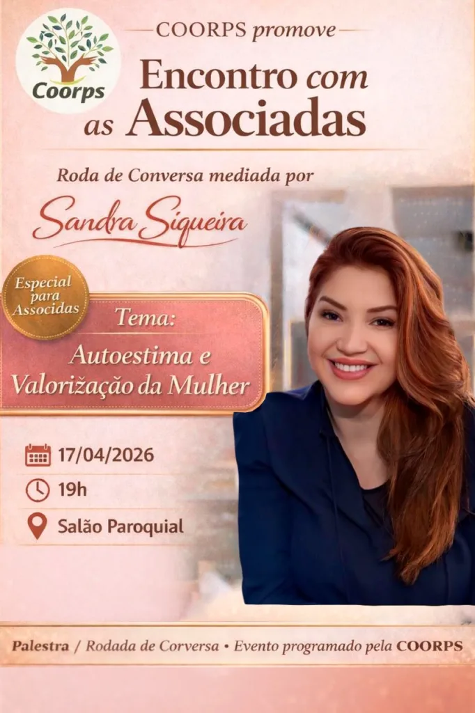 Santiago, RS – A Cooperativa de Prestação de Serviços – Coorps realizará, no dia 17 de abril, um encontro especial voltado às suas associadas, com uma proposta de troca, reflexão e fortalecimento feminino.